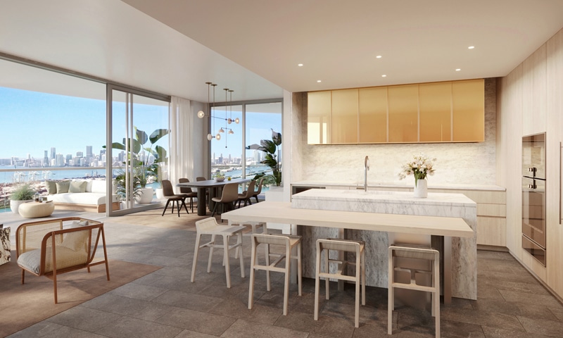 • Las residencias cuentan con cocinas diseñadas a medida por Gabellini Sheppard